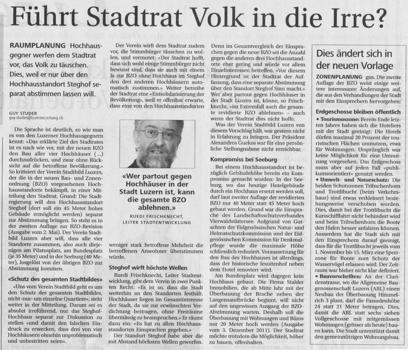 "Führt Stadtrat Volk in die Irre?", Neue Luzerner Zeitung, 15. Mai 2012, S. 24.